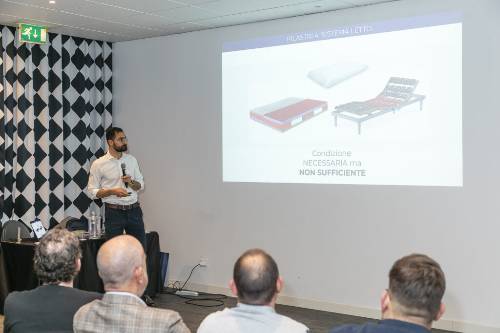 Il fulcro della giornata è stato il corso di formazione “IL POTERE DEL SONNO. Lo Sleep Coaching come metodo per trasformare il sonno in energia e risultati”, tenuto dal formatore Riccardo Valesini, figura di riferimento nel mondo del benessere psico-fisico.